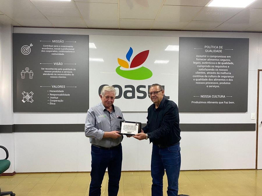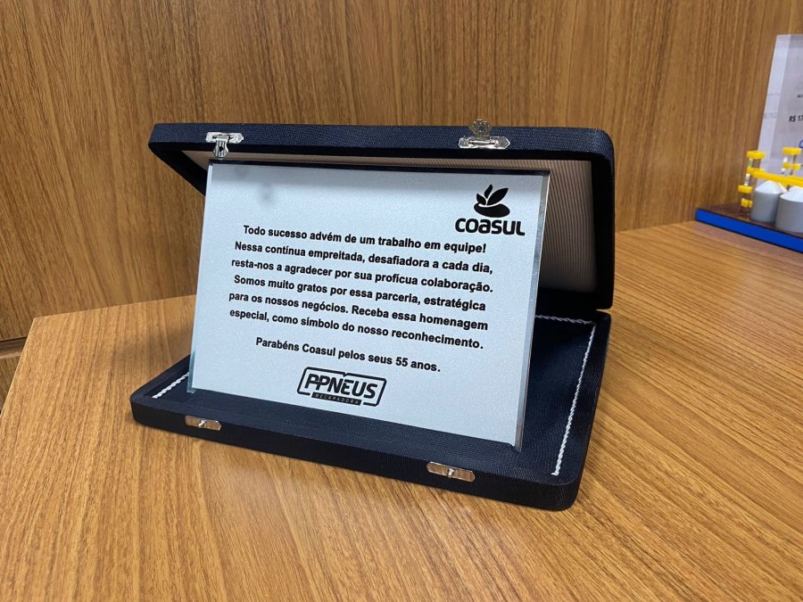 Hoje, dia 10 de junho, a Coasul recebeu uma homenagem da Recapadora PPneus pelos 55 anos de parceria. O Sr. Pedro Garcia e Marcelo Garcia entregaram uma placa comemorativa ao Diretor Presidente, Jacir Scalvi, em reconhecimento à trajetória de excelência da nossa cooperativa. Que esses laços de colaboração e confiança continuem a nos fortalecer!