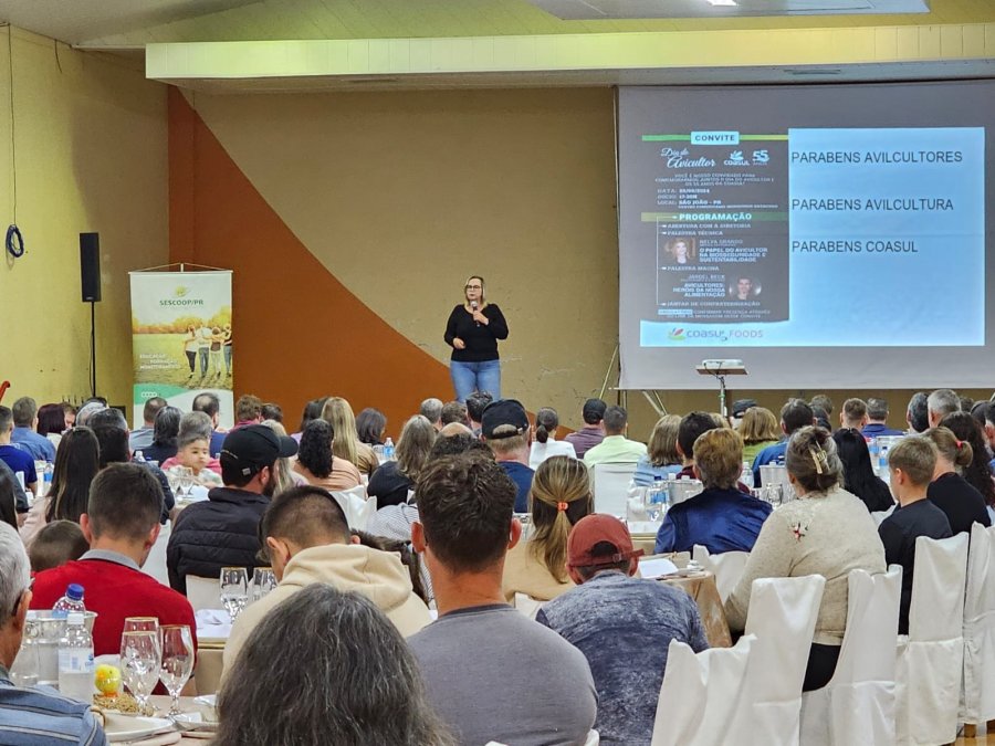 Na noite de ontem, a Coasul promoveu um evento em comemoração ao Dia do Avicultor, reunindo avicultores de várias localidades que integram a cadeia de frangos do abatedouro de aves. A programação iniciou com uma apresentação institucional da Coasul, seguida por uma palestra técnica da médica veterinária Nelva Grando, que abordou "O Papel do Avicultor na Bioseguridade e Sustentabilidade". Na sequência, Jardel Beck, palestrante e escritor, conduziu uma inspiradora palestra com o tema "Avicultores: Heróis da Nossa Alimentação", destacando a importância desses profissionais para a sociedade. O evento reforça o compromisso da Coasul com o desenvolvimento sustentável e a valorização dos avicultores, fundamentais para a segurança alimentar.