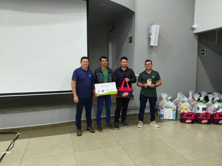 Durante o evento, os avicultores receberam prêmios em dinheiro no valor de R$ 1.500,00, além de cestas com produtos oferecidos pelo Supermercado Coasul.