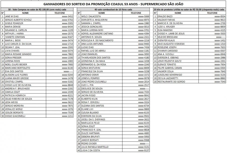 O sorteio foi realizado hoje dia 21/06/2022 em cada um de nossos supermercados COASUL :