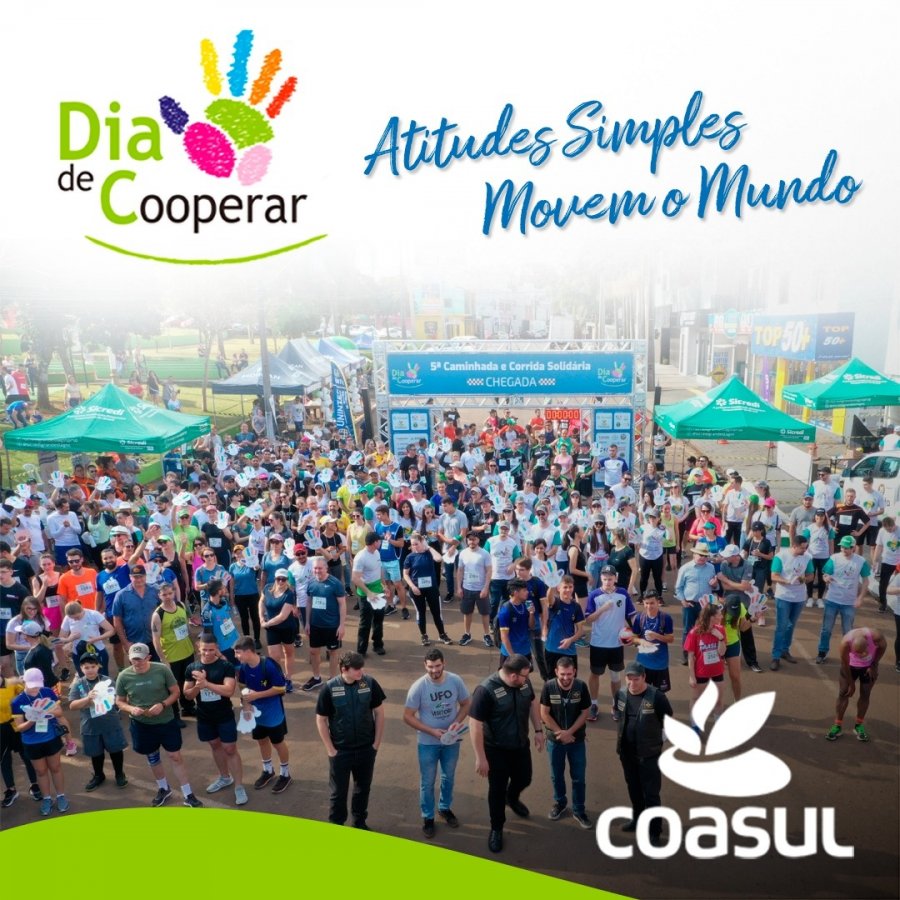 No Dia Internacional do Cooperativismo, o Sicredi Grandes Lagos PR/SP e a Coasul uniram forças em Laranjeiras do Sul para realizar a 5ª Corrida e Caminhada Solidária, com a participação de mais de 1.000 pessoas e arrecadação de R$ 21.935,00. O valor foi destinado a quatro entidades beneficentes. Em Dois vizinhos a Coasul, colaborou com a Caminhada Solidária, que contou com mais de 400 participantes e arrecadou mais de 2.500 quilos de alimentos para entidades carentes. Agradecemos a todos que participaram desses eventos solidários em Laranjeiras do Sul, fortalecendo o espírito cooperativista e promovendo a solidariedade na comunidade