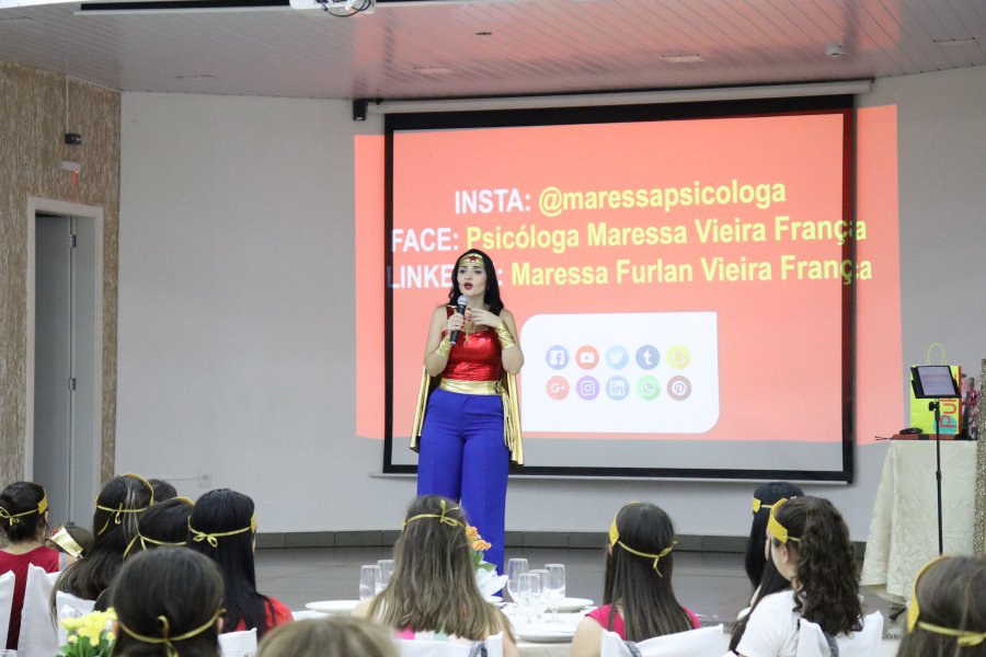 As participantes prestigiaram a palestra “Não sou a mulher maravilha, mas fui feita maravilhosa” ministrada pela psicóloga Maressa Vieira França, a qual de uma maneira muito divertida levou informações para as mulheres superarem as pressões do cotidiano, aproveitarem as alegrias do feminino e reconhecerem as competências que há no SER MULHER.